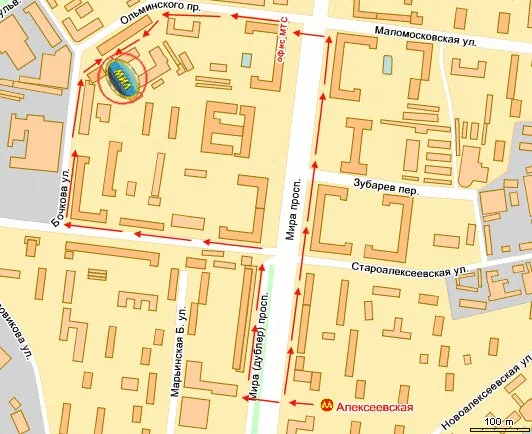 На общественном транспорте: от метро Алексеевская 2-я остановка троллейбуса в сторону ВДНХ, по подземному переходу перейти проспект Мира к офису МТС, поворот на проезд Ольминского, прямо вдоль забора до жилого дома со сбербанком. Во дворе дома находится здание института.