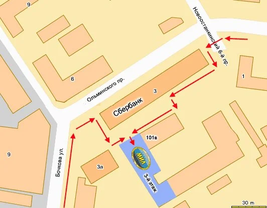 Внутри здания прямо и налево, вход в дверь налево, подняться на 3-й этаж.